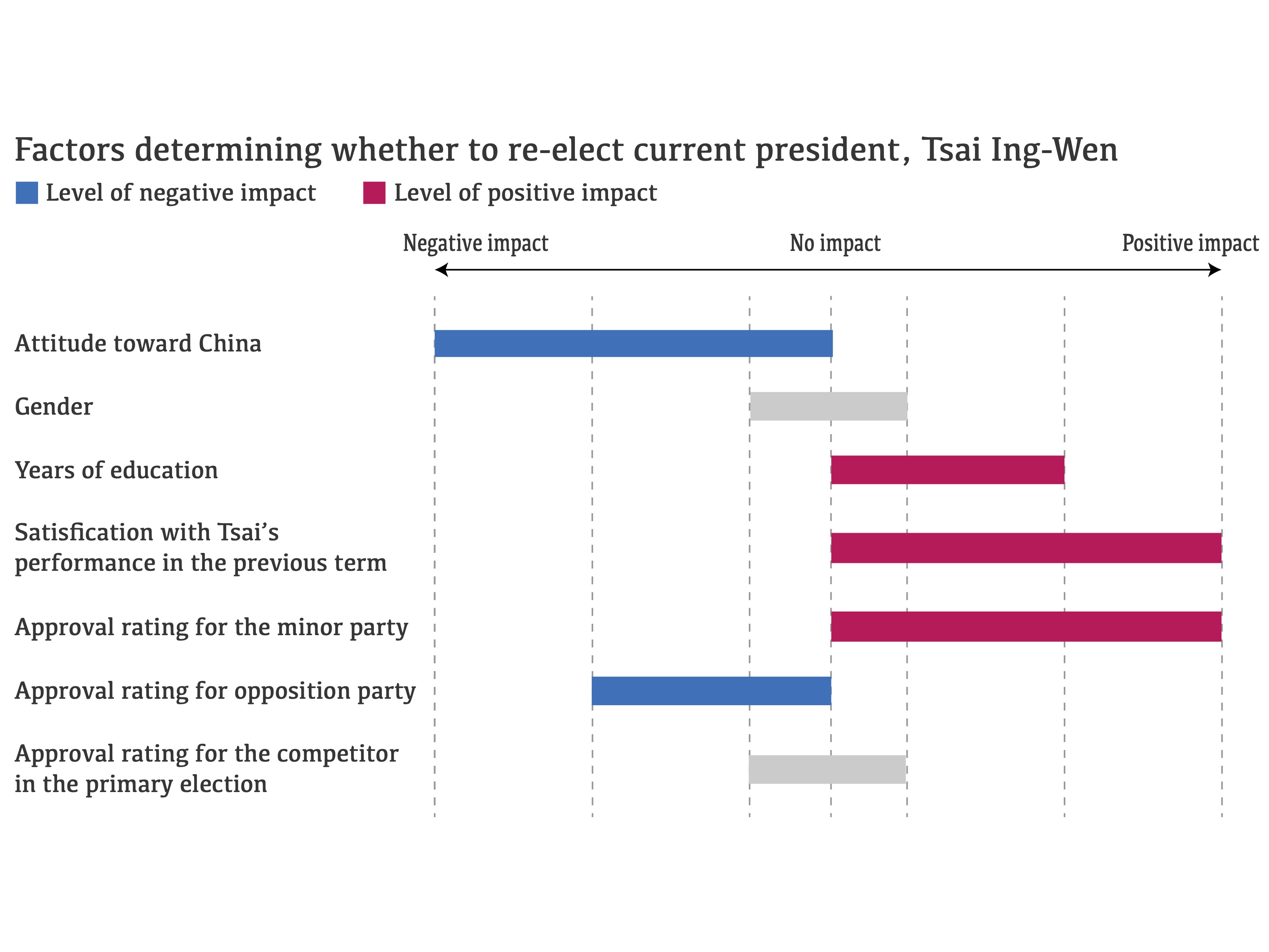 - Trust in China Tsai was the leader of the pro-independence ruling Democratic Progressive Party, so voters’ attitude toward China might affect their support for Tsai.